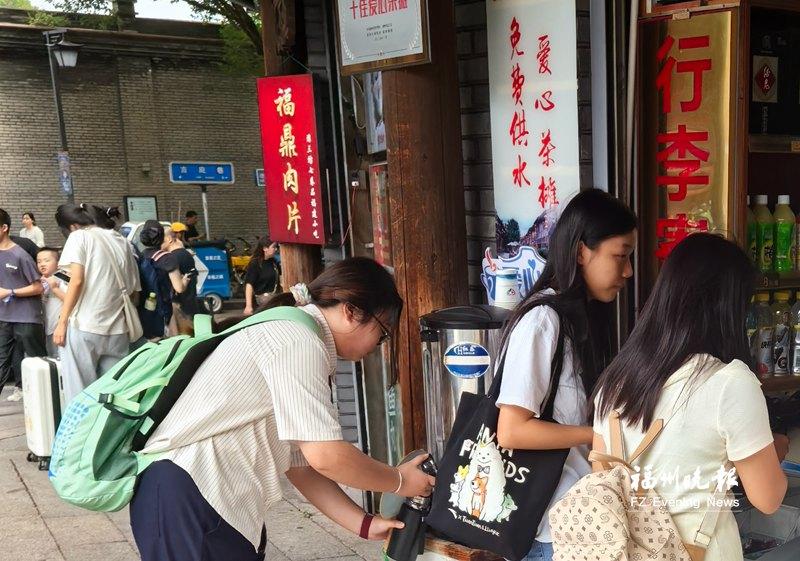 据悉,鼓楼区紧密结合国庆等重要时间节点,以三坊七巷为核心区域,持续打造“爱心茶摊特色服务街区”,并以此为契机,常态化开展全国文明城市宣传工作。此举旨在进一步拓展“爱心茶摊”服务的深度与广度,使其从单一的免费供水点,升级为服务群众的综合平台。(记者 刘珺 通讯员 王国兴 文/摄)