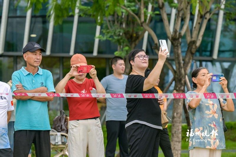 1日赛场上,还有一群特殊的体验者。博士研究生倪军和他的同学们来自福建师范大学体育学院。得知龙舟赛即将举办的消息后,他们提前联系主办方,1日他们来到现场当起服务志愿者,大家对水韵榕城有了更深的认识。“人水和谐共生,晋安湖公园是风景,也是老百姓运动休闲的场所。这一点更让我觉得,有福之州,名不虚传。”倪军对记者说。(记者 李锦清/文 陈暖/摄)