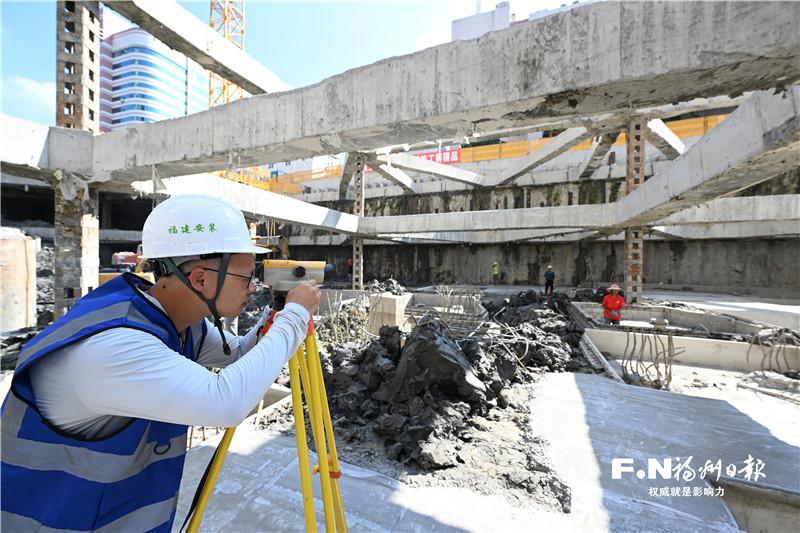 测绘人员在福建建投产业大厦项目工地作业。记者 池远 摄