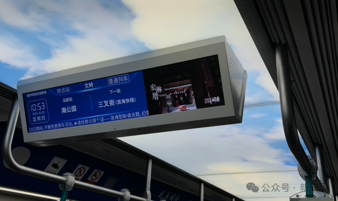 步入地铁车厢,仿佛踏入了闽清“沉浸式展厅”。循环播放的宣传视频中,宏琳厝的飞檐翘角尽显古厝风华,白岩山的群峰竞秀演绎自然壮阔,村唱舞台的热情洋溢传递乡土活力,七叠温泉的舒适惬意让人身心松弛。