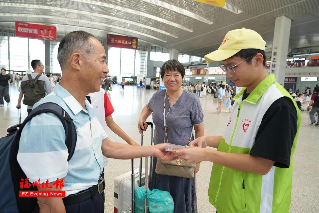 为更好服务旅客出行,福州火车站加大候车室巡视力度,及时疏导人流、解答旅客咨询;同时协调多支志愿者队伍进站服务,在检票口、电梯口、换乘通道等关键点位引导客流,协助老年旅客、携带儿童的家庭旅客搬运行李。站内广播与流动小喇叭循环播报检票信息等内容,提醒旅客按时乘车;候车区的热水供应点、手机充电设备全天候保障,助力旅客便利出行。