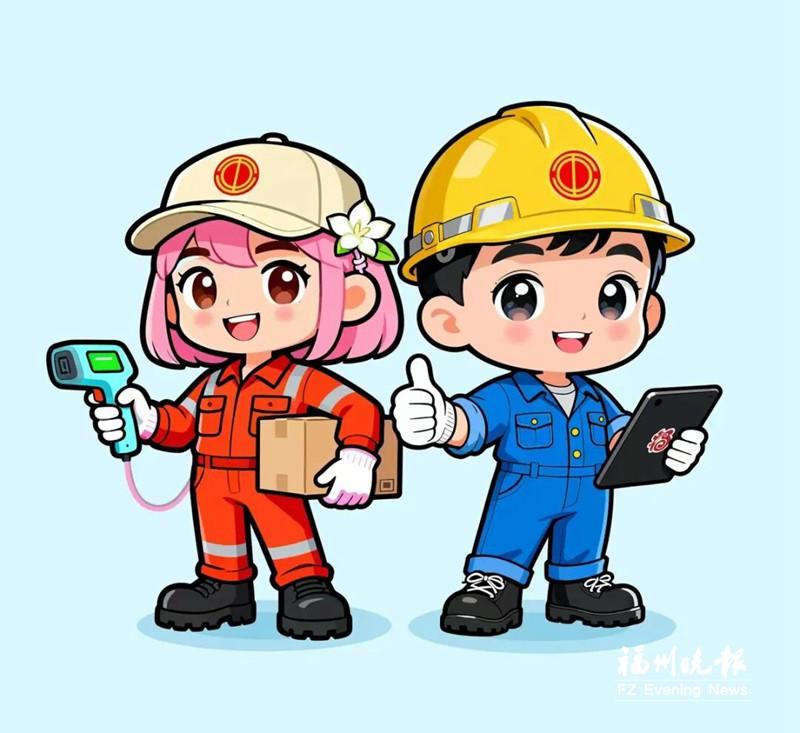 第五名作品(作者林鑫艺)阿福、福妹IP形象设计以职工属性为核、萌系风格为表、福州文化为魂,在原有形象基础上进行深度优化。