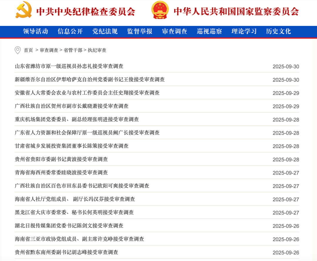 10月9日,中央纪委国家监委网站发布9月反腐月报——