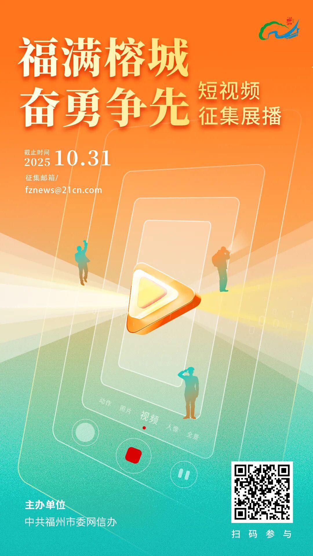 “福满榕城 奋勇争先”短视频征... 由福州市委网信办主办的2025年“福满榕城 奋勇争先”短视频征集展播活动来啦!即日起至10月31日,...