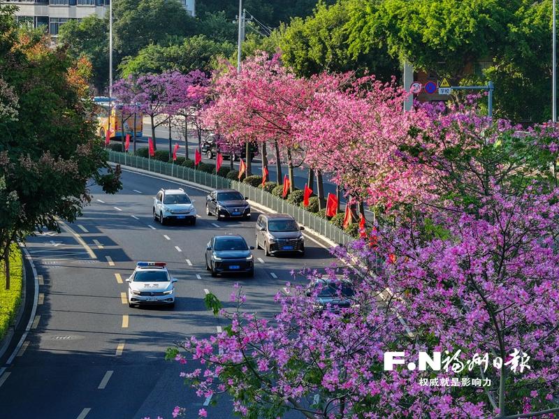 从国庆长假开始,远洋路和国货东路的分车带上,300多株美人树进入盛花期,为福州增加秋日的浪漫。