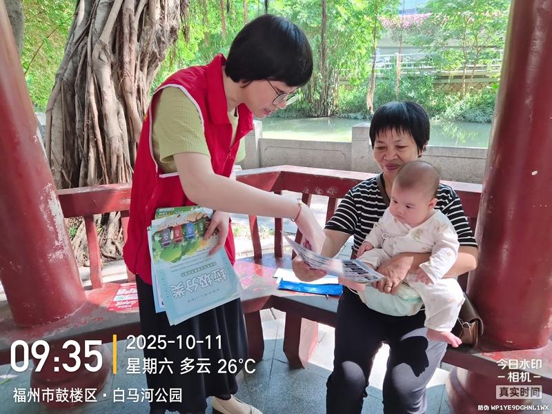 为深入贯彻绿色发展理念,倡导绿色低碳生活方式,2025年10月11日上午,鼓楼区兴园社区组织辖区内共建单位福州日报社、小柳幼儿园等单位党员志愿者到白马河公园和斗池新村B区开展“垃圾分类齐参与,低碳生活新时尚”志愿服务活动。