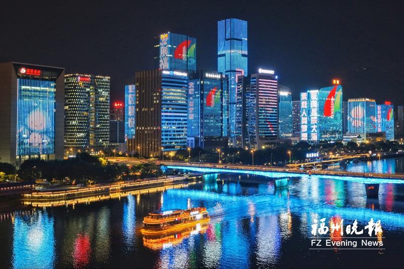 福海扬帆,绿动领航。15日晚,2025世界航海装备大会主题闽江灯光秀,在海峡金融商务区梦幻上演。
