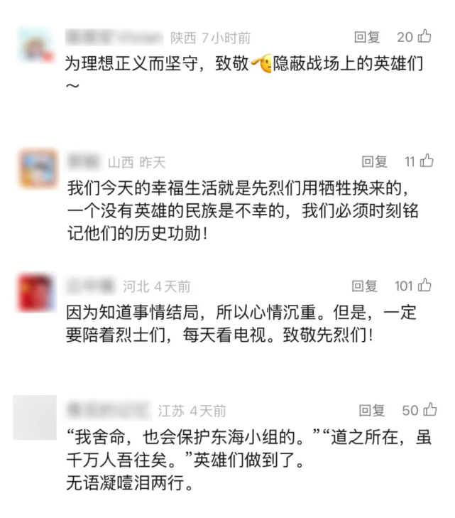 网友纷纷留言:“这是首部没有悬念但仍然想要追下去的剧!”“因为知道结局,所以心情沉重,但一定要追下去,唯一的理由就是致敬先烈!”