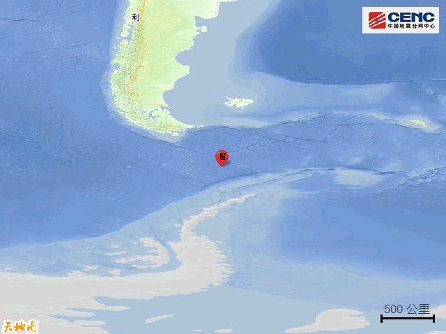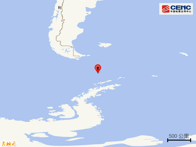 据中国地震台网正式测定,10月16日9时42分在德雷克海峡发生6.1级地震,震源深度10公里,震中位于南纬59.95度,西经61.50度。