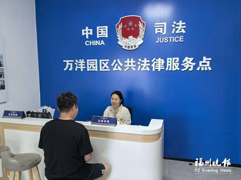为让企业享受“家门口”的法律服务,马尾区司法局整合资源,依托马尾万洋运营服务中心,建成集人民调解、普法宣传、法律咨询、法律援助、公证服务于一体的综合法律服务平台。中心实行“前台统一受理、后台分类处理、结果及时反馈”流水线作业,配备专人接待并落实“首问负责制”“限时办结制”,确保涉企矛盾“一站式接收、一揽子调处、一链条解决”。
