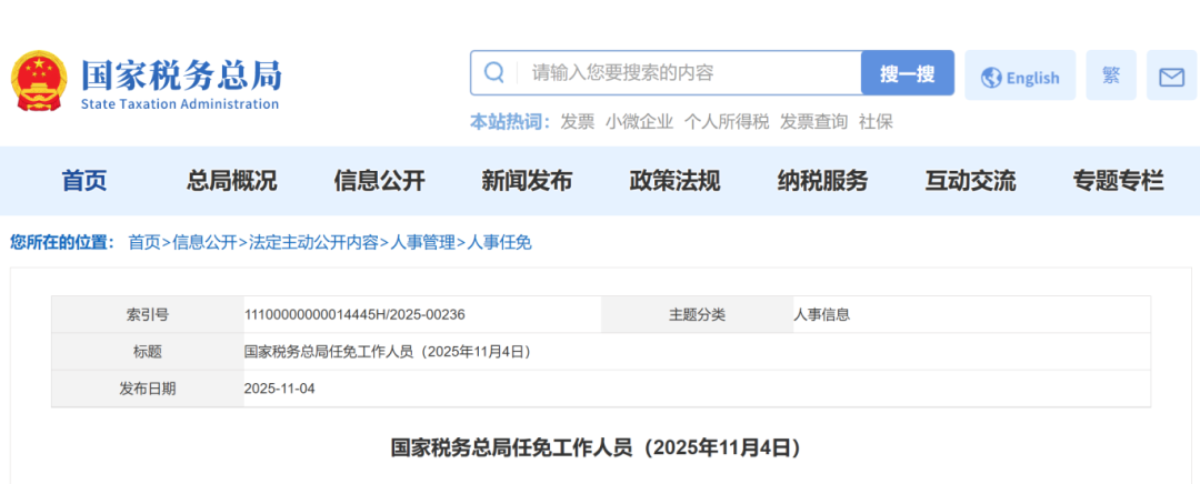 据国家税务总局官网11月4日消息,国家税务总局任免工作人员,其中,决定任命林茂柏为厦门市税务局副局长,来看详情——